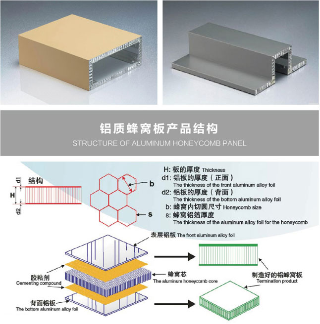鋁蜂窩鋁單板是采用經(jīng)氟碳噴涂處理的耐候性極佳的高強度合金鋁板作為面、底板,中間是鋁蜂窩芯,經(jīng)高溫高壓復(fù)合而成的蜂窩式夾層結(jié)構(gòu)板材。具有質(zhì)輕、強度高、鋼性好、隔音、隔熱等特點。鋁蜂窩板是航空、航天材料,目前已逐步發(fā)展應(yīng)用于民用領(lǐng)域,如建筑業(yè)、交通工業(yè)、廣告牌等行業(yè)。本公司引進先進的全自動連續(xù)復(fù)合生產(chǎn)線,采用冷膠和熱復(fù)合相結(jié)合技術(shù),使產(chǎn)品達到先進水平,同時豐富多彩的造型板能充分實現(xiàn)建筑師完美的創(chuàng)意。