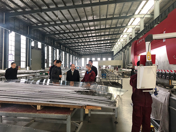 隨后,考察團參觀了公司的生產車間,企業負責人介紹了各類生產工藝流程、圍繞節能環保、輕量化、抗腐蝕、防火、高承壓等特性的下一代室內外幕墻裝飾新型材料的批量化研發及制造。考察團領導高度贊揚了公司的企業文化,對我司在產業工作中付出的努力與取得的成就給予了充分肯定。并鼓勵我司再接再厲實現新跨越、新發展!